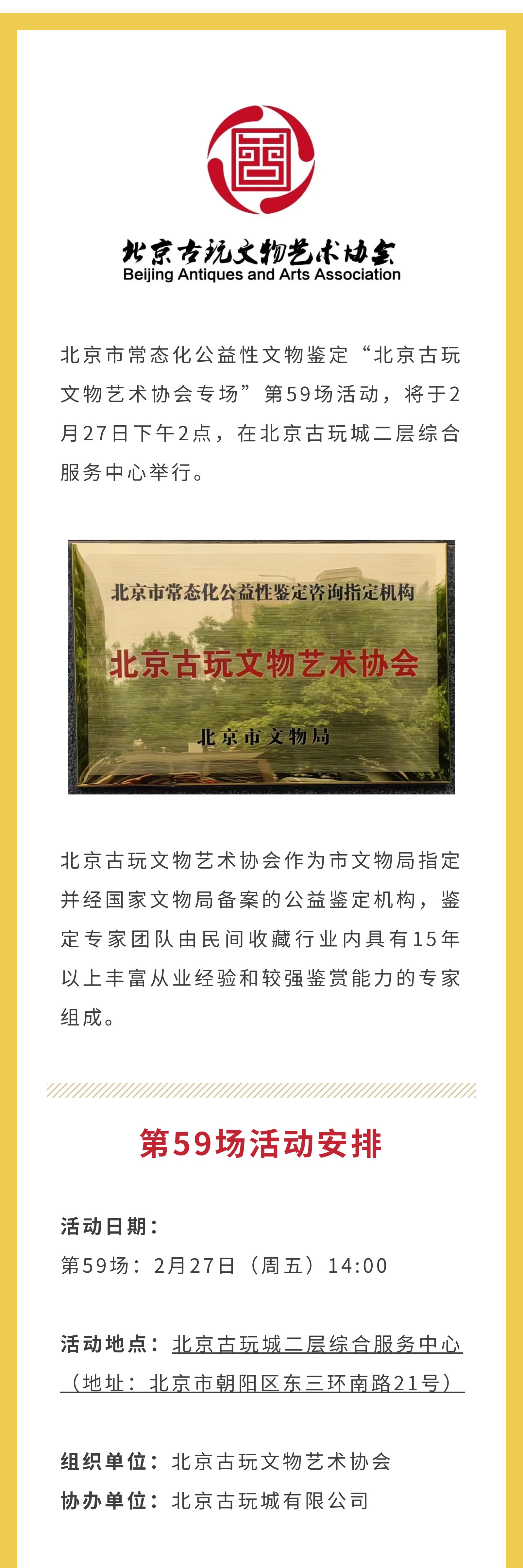 第59场丨北京市常态化公益性文物鉴定“北京古玩文物艺术协会专场”于2月27日举行