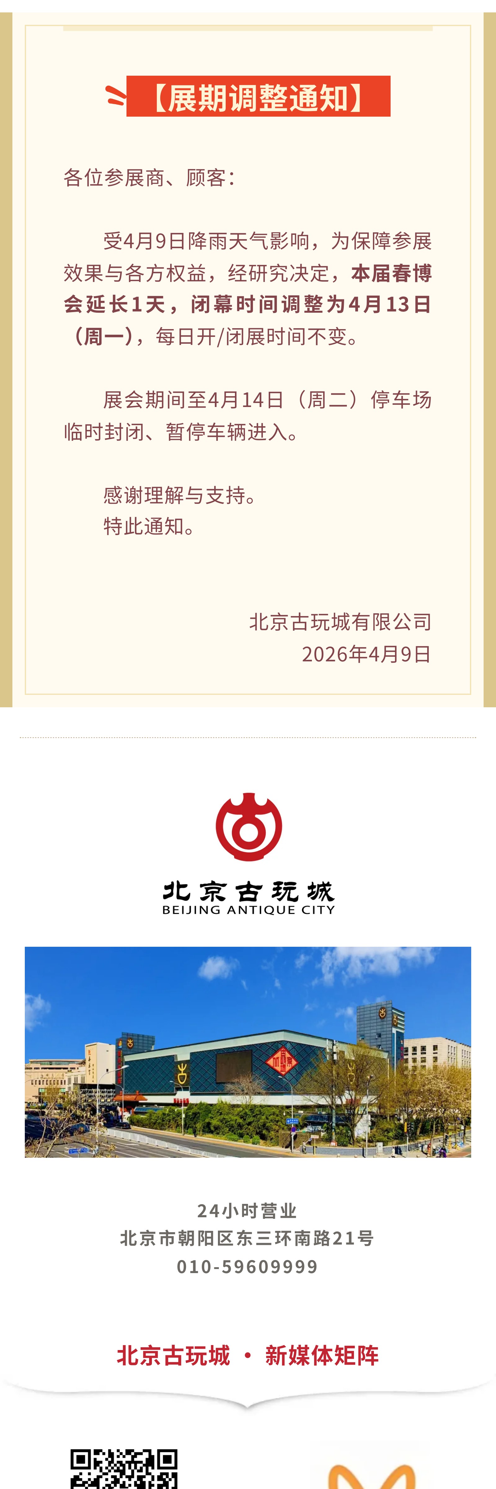 • 【展期调整通知】 北京古玩城第十八届春季古玩艺术品博览会顺延至4月13日闭幕